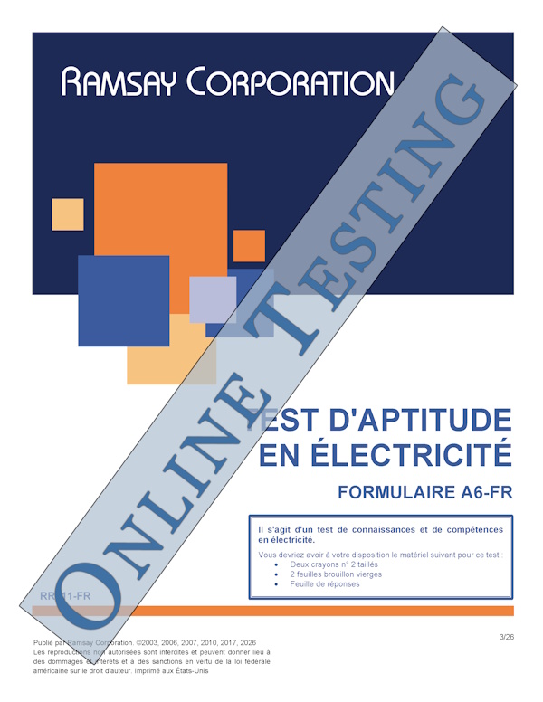 Ramsay Corporation's Electrical Aptitude Test was developed to be used to enable a quick 18-minute evaluation of a person's ability to learn electrical and maintenance job activities. This test is not designed to measure specific knowledge and skills, but rather the potential to be successful in an apprenticeship or trainee program for maintenance jobs.